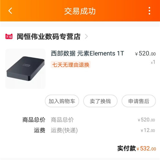 西数1T移动硬盘