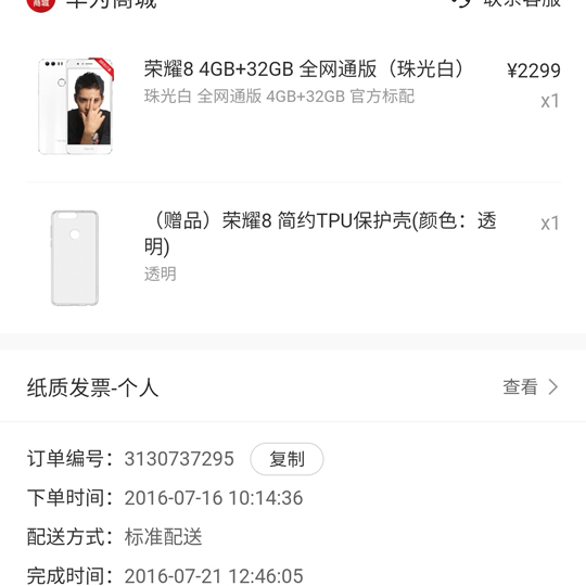 荣耀8(4+32G),买给老爸用的!