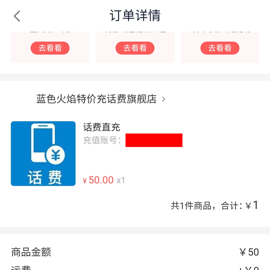 果然被我撸到了50元话费,只需要支付1元就行了,我反复确认,确实是1元的24期分期,而不是50元的24期分期!