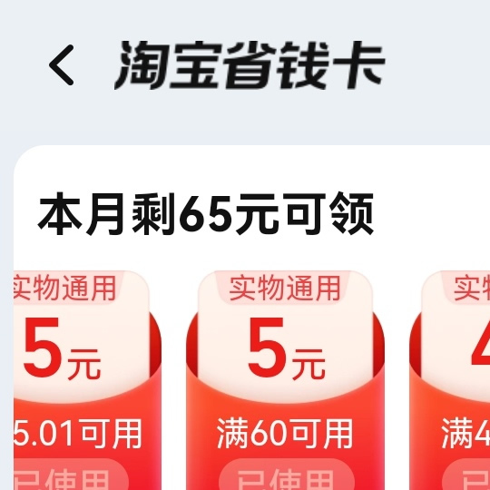 这玩意儿是特邀的,不能自主开通,这种玩饥饿营销的行为就很让人讨厌! 省钱卡有两种模式,一是不同的消费金额减免不同的红包,另一种是固定的满2.01元减2元!此外收费的价格也不尽相同,这是根据大数据判断的,一些新人淘宝号甚至可以免费,同样是很贱的行为!