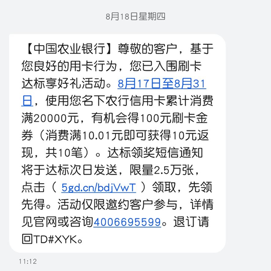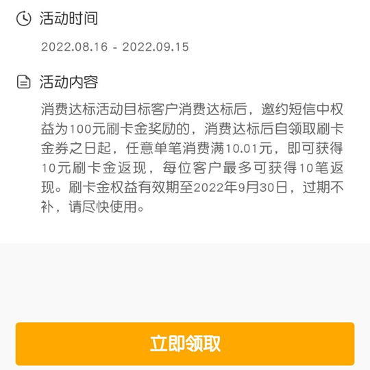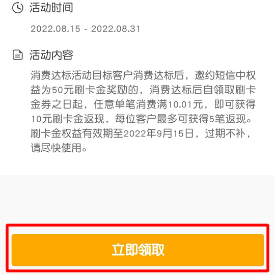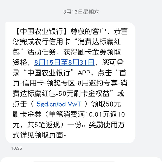 5个10块钱的红包返现,每个红包使用条件是必须消费需要大于10.01元!