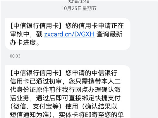 然后等到10月25号突然就收到短信说通过了初审,让我带身份证去网点激活,不过我担心去到网点会复审失败,就没搭理!
