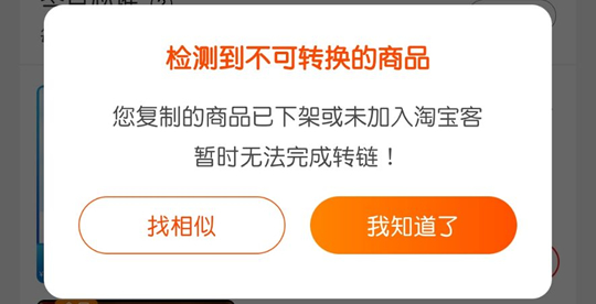 PS:如果你选择要推广的商品,商家并没有推广,那么淘宝联明会提示你“检测到不可转换的商品”!
