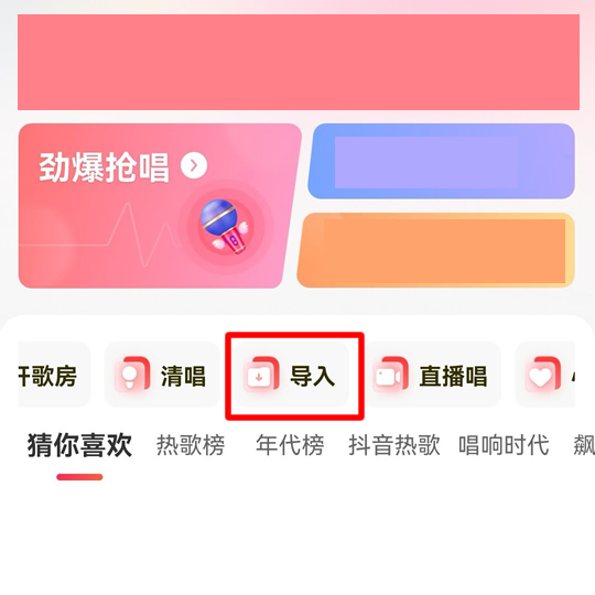 2、拖动并点击“导入”,将你要外链的视频上传到唱吧;