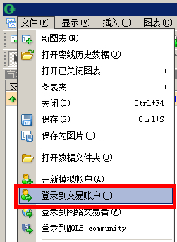 1、下载MT4并打开软件,点击左上角的“文件(F)——登录到交易账户(L)”: