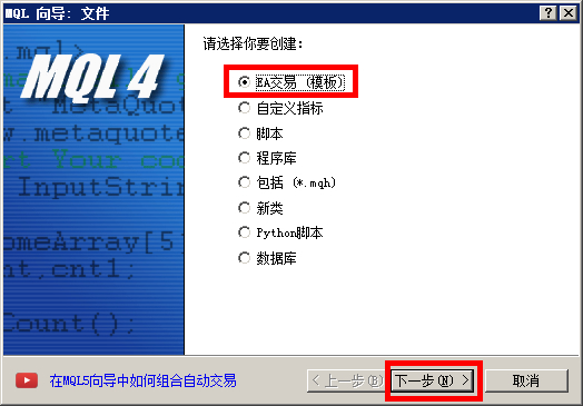 5、选择“EA交易(模板)”,再点击“下一步(N)”: