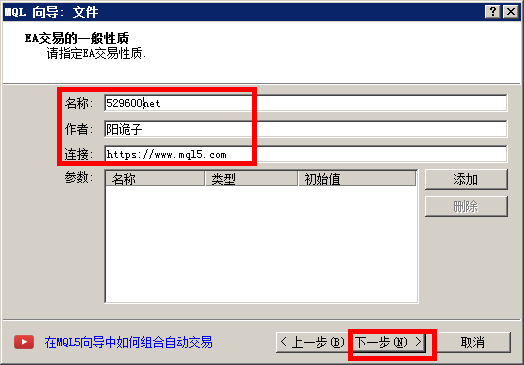 6、输入模板的名称、作者、连接,点击“下一步(N)”: