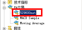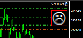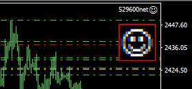 5、此时右方的走势图表的右上角,会出现脚本名称以及一个笑脸的符号(红色框是我额外添加上去的放大图片,方便阅读理解):