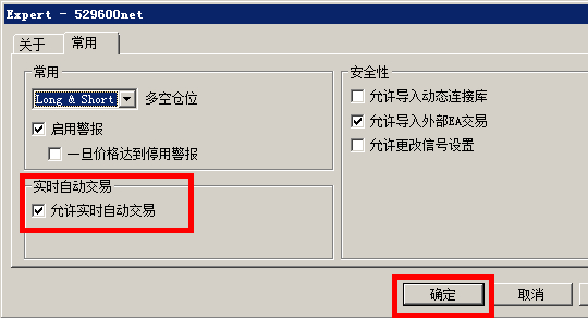 4、在脚本属性页面点击“允许实时交易”,然后点击“确定”: