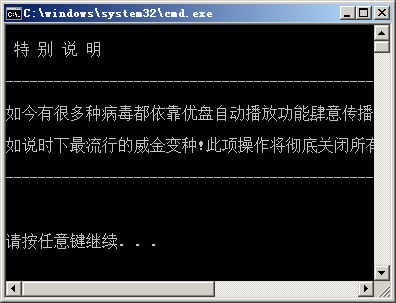 @ ECHO 如说时下最流行的威金变种!此项操作将彻底关闭所有驱动器的自动播放功能,请谨慎使用!
