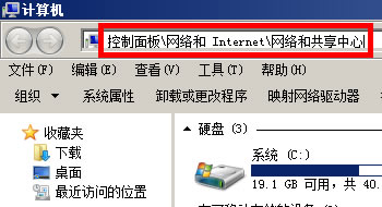 1、打开“计算机”,在地址栏里输入“控制面板\网络和 Internet\网络和共享中心”,然后按“回车键”;