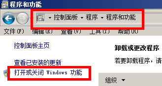 05、打开“控制面板\程序\程序和功能”,点击“打开或关闭 Windows 功能”;