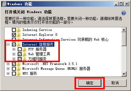 06、勾选“Internet 信息服务”(因为是本地电脑,所以没有必要勾选安装FTP服务器);