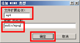 13、在文件扩展名一项填入“.mp4”,在MIME类型一项填入“audio/mpeg”即可!至此,按照本文所述,如果此时K盘下面有一个01.mp4的视频文件,那么内网地址则是“http://192.168.1.222/01.mp4”,只要手机连接上WIFI,就可以直接用这个内网地址访问了;