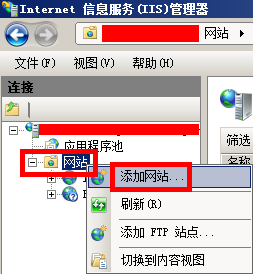 14、如果一个磁盘的容量有限,那么可以在IIS里用鼠标右键单击“网站”,然后点击“添加网站”;