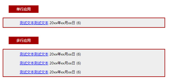 <li><a title="测试文本测试文本" href="1.html">测试文本测试文本</a> 20xx年xx月xx日 (6)</li>